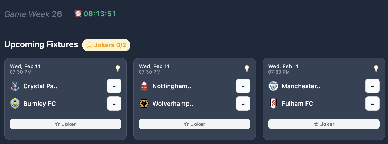 Really confident? Want to jump up the league? Play your Joker for double points!!